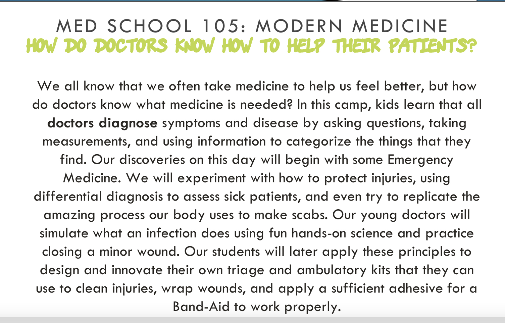 Modern Medicine starts with Emergency Medicine at Kids Science Labs