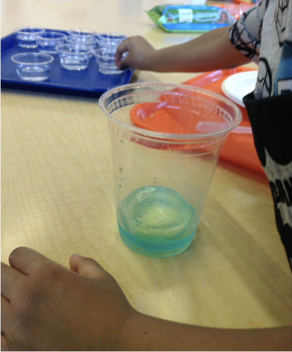 Some of our students, use an Applied Science Challenge to provide each student with a set of polymers (jelly marbles) submerged in 50mL of water, and then had them add various solids to ultimately change the density of the water or find other solutions, such as chemical reactions, that would move the polymers to the top of the flask, thus seeing that matter can be changed without using pressure or temperature. Butter is a very interesting case, as it is a suspension liquid, but appears very much like a solid under cooler temperatures. As scientists, does it maintain its shape, or does it fill the shape of its container….well it depends on the temperature and the type of butter it is, which is part of the problem solving point of this weeks class. Matter is unique and quite specific, and takes various characteristics depending on the environments it is placed in.