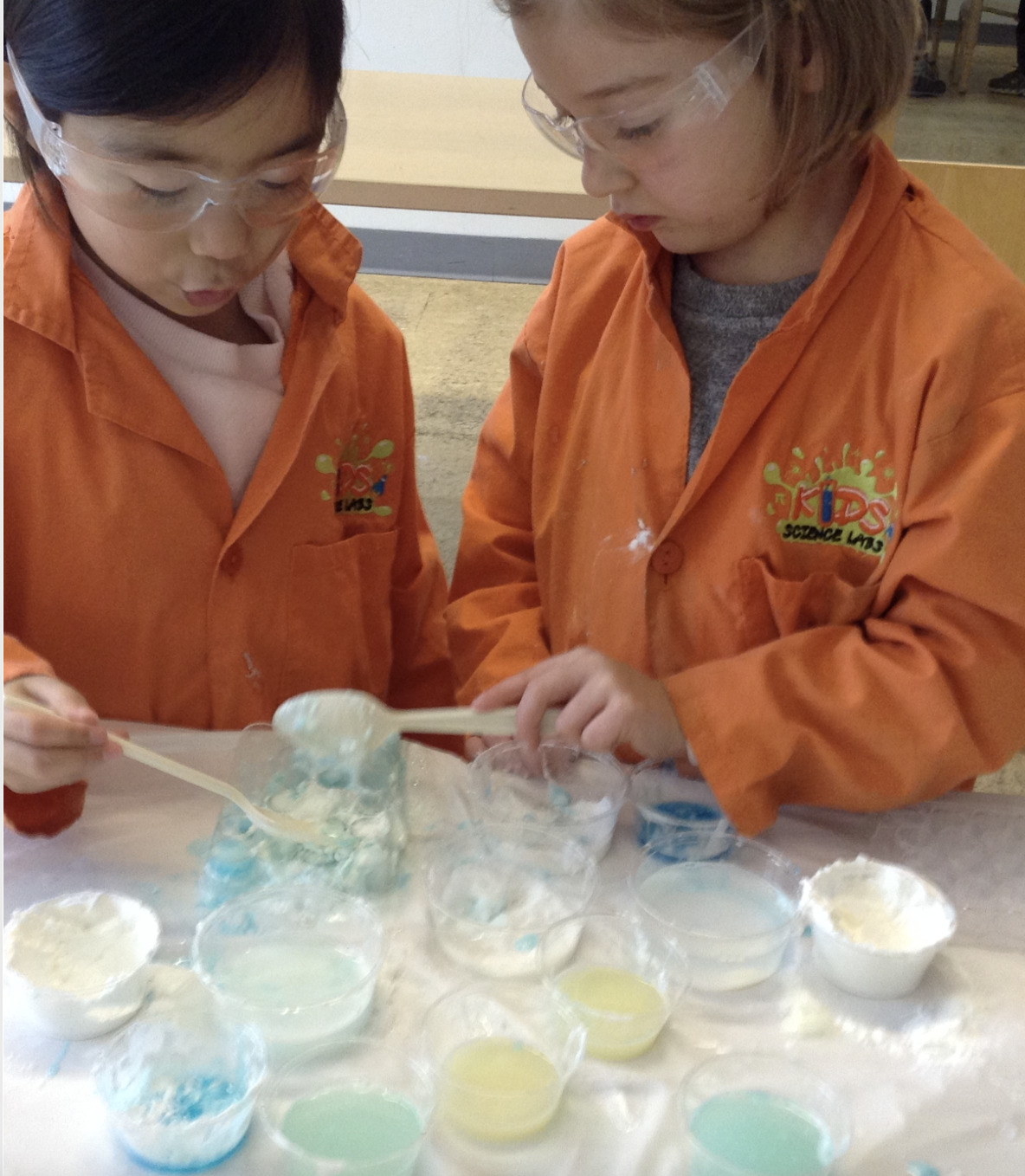 Kids learned more about mixing the elements and the chemical compounds they create, like brittle neon space chalk.