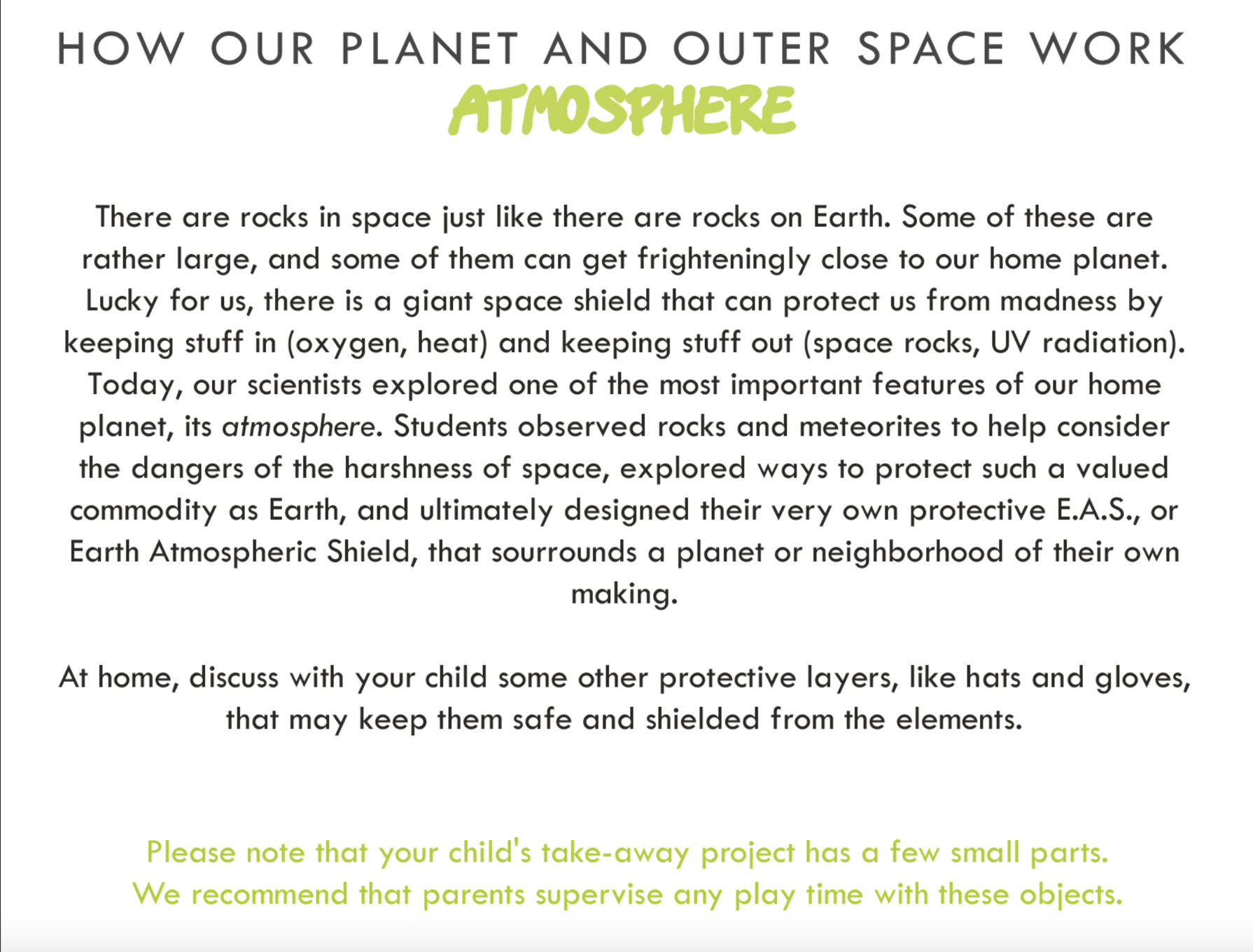 Your child may come home with an atmospheric shield that they used to protect their planet from fast moving, dense, objects.