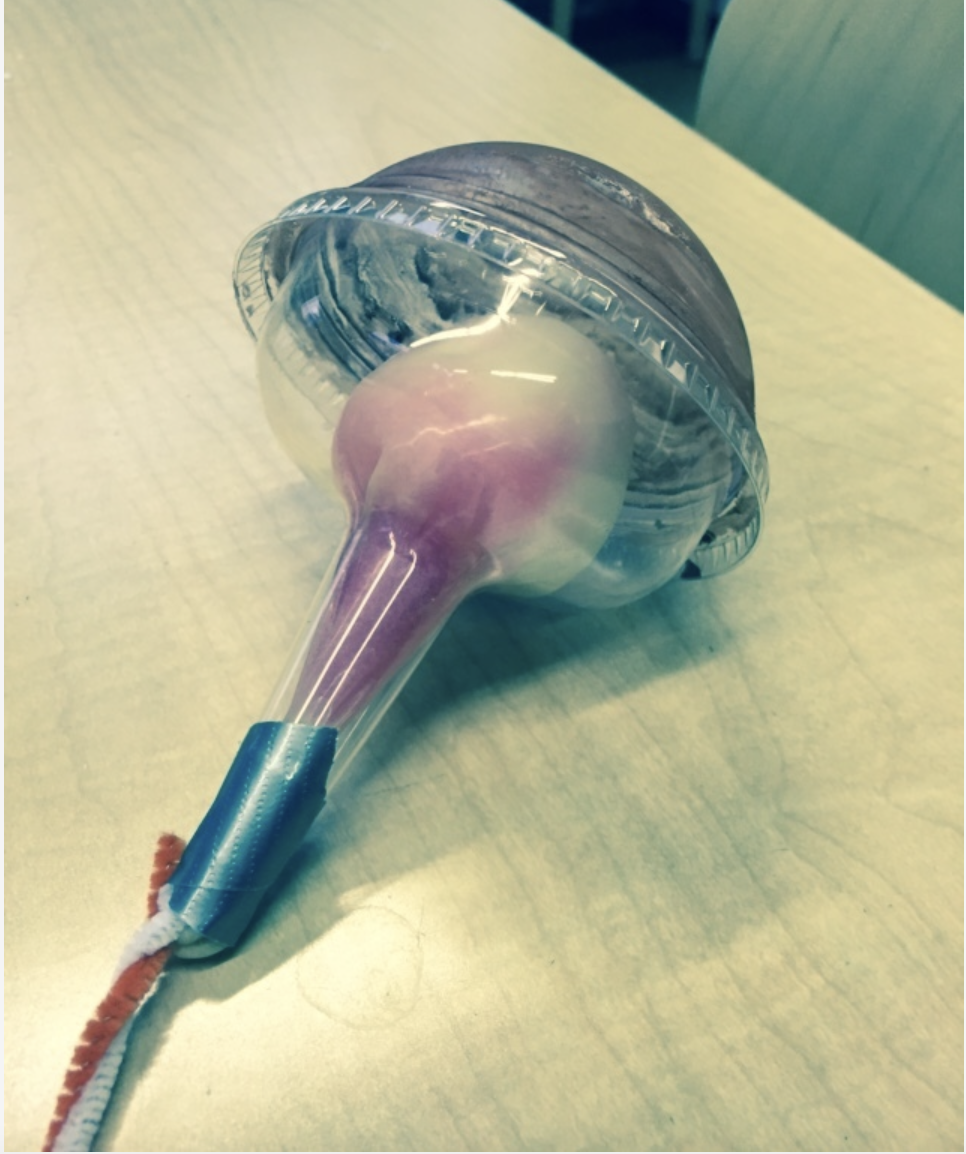 In one of our Discovery experiments today's we took a spherical gel-like ball (sodium polyacrylate) and dusted it with sand. What’s cool about this for kids is that just like our own eyeball, when kids look at the transparent ball, it inverts the image (upside down). By having students try to see through this ball when It is full of sand/dust, it becomes much more clear why our tear ducts are actively supplying water to our eyes. It also creates much more empathy for adults who are experiencing fuzzy vision or the pressure on the eye is degrading vision (glaucoma), as shown in one of our students glaucoma eye model below.